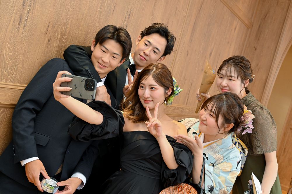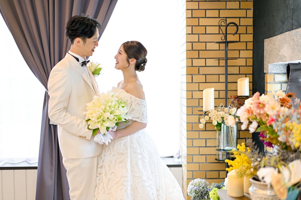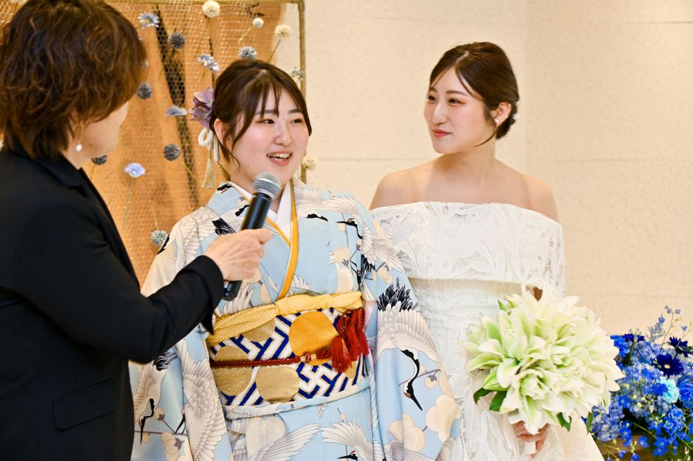 おふたり。ゲスト様からの「おめでとう~」の言葉を受けて