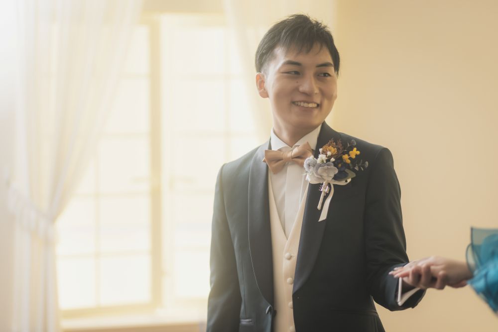 当日は空の機嫌が悪かったのか少し雨がチラつき肌寒い日でしたが、おふたりのフンワリ優しい笑顔で