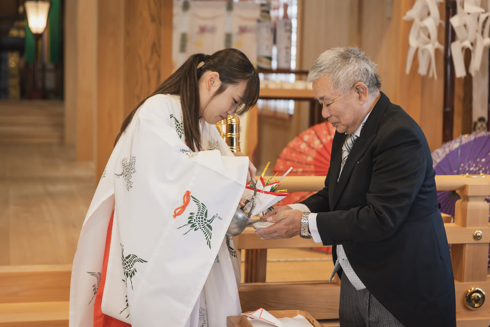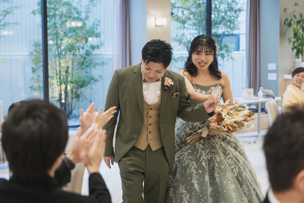 結婚式後のご感想に、“毎回の打合せがとても楽しかった!!”とのお話をいただきました。また“叶えたいことをすべて叶えられました!”ともおっしゃっていただき、本当に安心いたしました。神前結婚式はご親戚が宮司様のお社で、気心知れた皆さまと、温かく幸せな時間を過ごしていただくことができました。ブライダル西陣のプロデュースやアイデンの料理にも大満足とのことで、笑いあり、涙あり、感無量の結婚式となりました!!