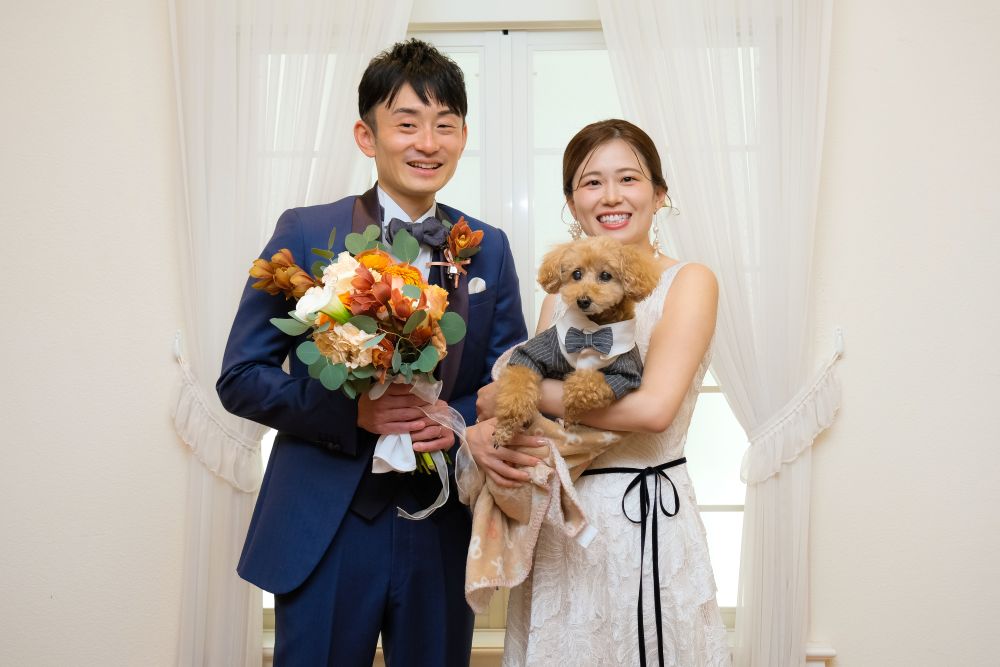当日はご家族や愛犬に囲まれて和やかに楽しく撮影が進みました。和装・洋装どちらもお召しになり