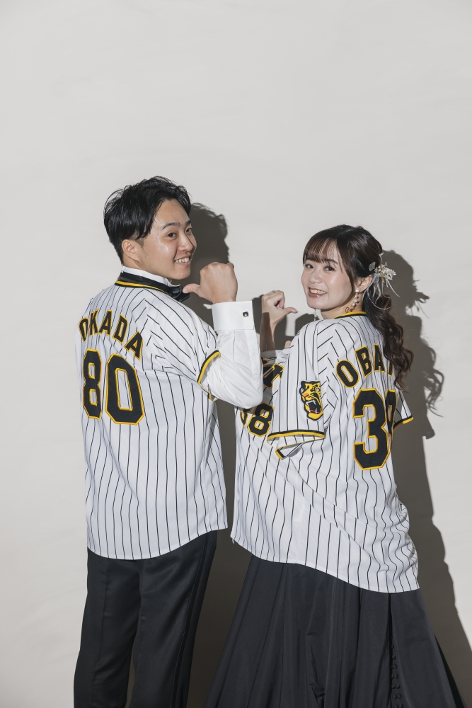 お二人の大好きは野球チーム「Tigers」も撮影に彩を添えました。